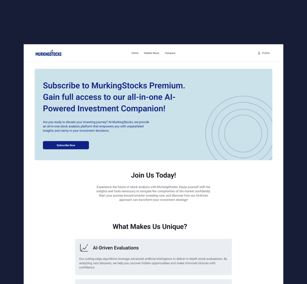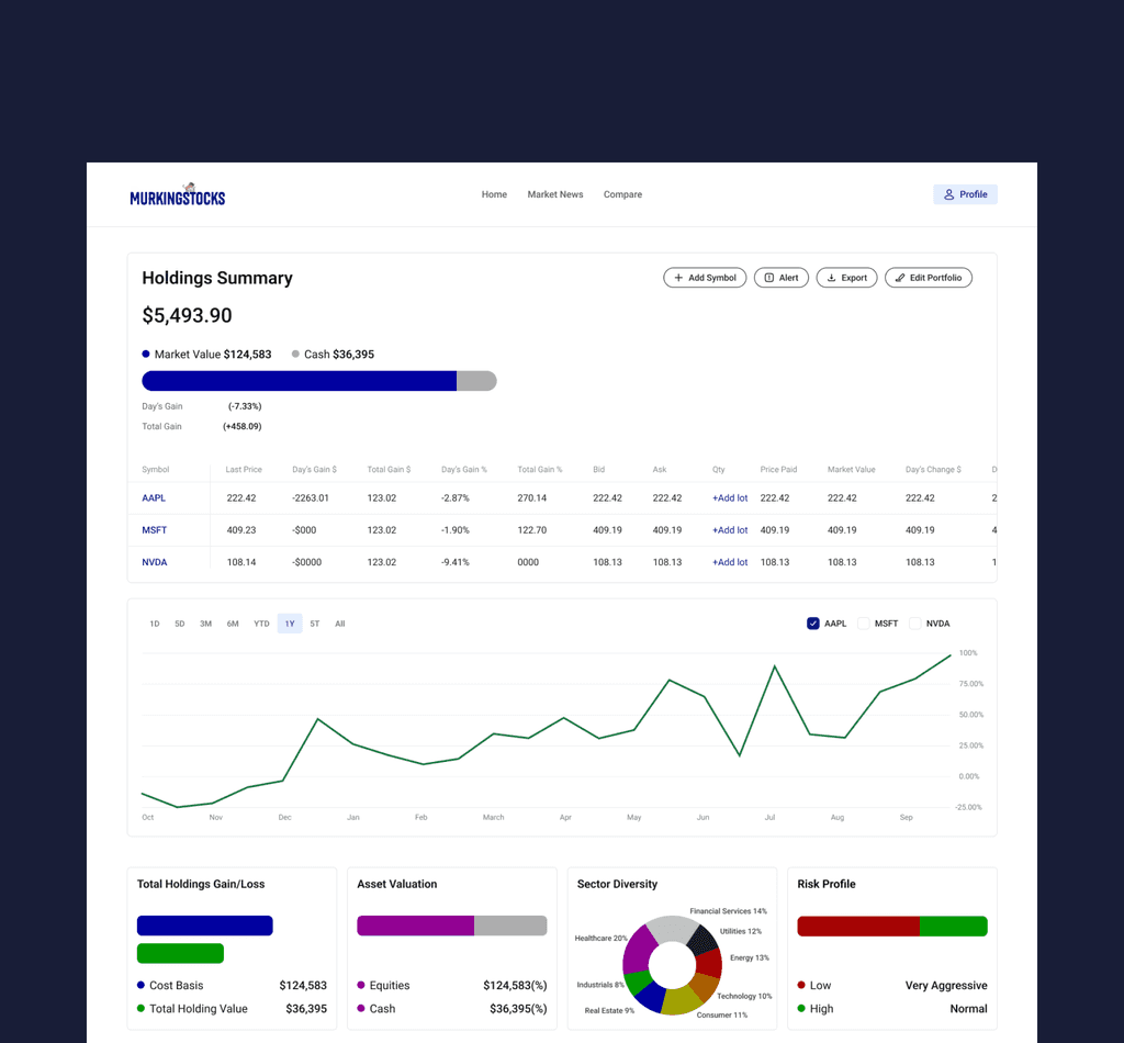 MurkingStocks is a real-time livestock monitoring platform that provides users with comprehensive insights into stock pricing, holdings, and other essential data. Designed to keep users informed and in control, the platform offers a seamless experience for managing livestock assets efficiently.