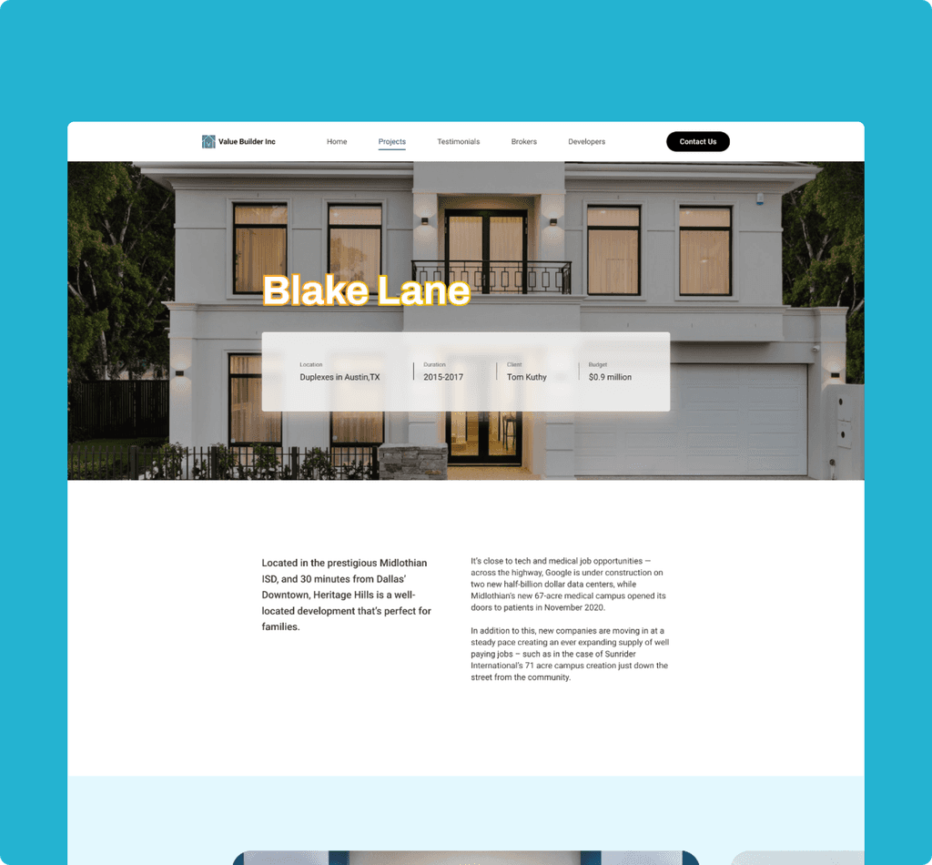 Value Builders is an investment property construction specialist in the Texas market, providing expertise in real estate development and investment.